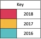 Nodes should then be added to the diagram to reflect your charity’s score in each of the dimensions in this assessment framework. These nodes can be joined by lines to aid visualisation of the scores. Care should be taken in using these 8 scores to reach an overall judgement on sustainability as the relative weight of, and implications attached to, each dimension will depend on the prevailing circumstances. Subsequent years’ assessments can be added in different colours so that change can be tracked. An anonymised example of the use of this framework (with a different client) is provided below and should be interpreted using the key below.